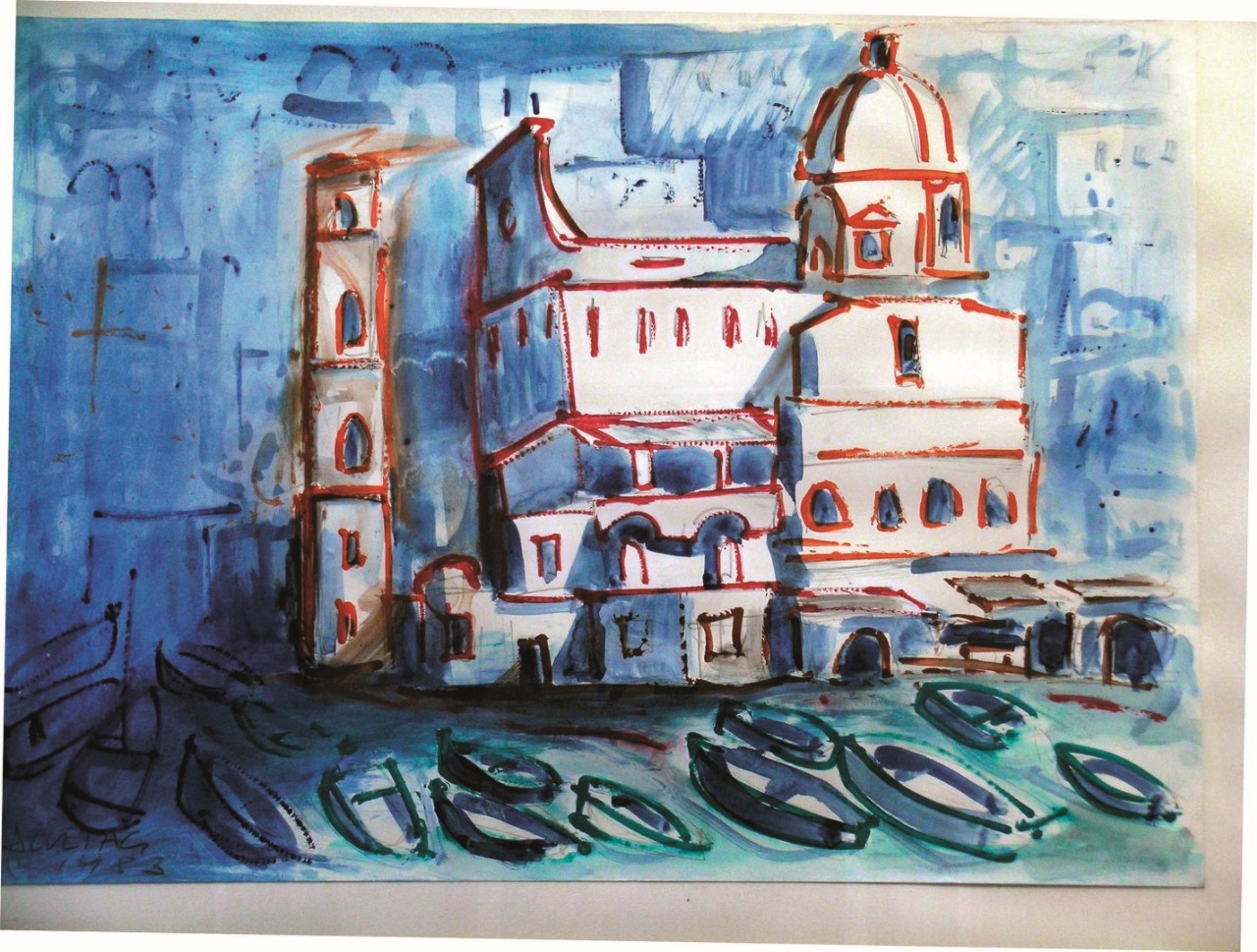 Mi accorgo solo adesso, scrivendo di lui che Cesare Devetag, il Devetag che conosco da molti anni e che incontro sempre con molta simpatia, riconduce a una doppia immagine: il pittore e il politico. Anche a tentare di sovrapporle, queste immagini, dopo un pò, riprendono la loro autonomia, sorridente realtà. Ci vuole caparbietà e anche una oscura incapacità a decidersi per portare avanti questi due discorsi. Così antipatici l’uno all’altro. Lo confessa lo stesso Devetag, con i suoi occhi trasparenti (clamorosamente impropri in un politico impegnato). “Un artista” – egli dice – “per modesto che sia, è prima di tutto un uomo libero nel senso più lato della parola: è solitamente anticonformista, contrario alla routine, al padrone, al sistema”. La mitezza e, appunto, la sorridente e vera “signorilità” del Devetag gli hanno forse impedito di fare, negli anni entusiasmanti del primo dopoguerra, la scelta “sventata della pittura”. In quegli anni la vita artistica – culturale di Gorizia era quanto di più struggente uno possa ricordare: il paterno, fanatico amore per gli artisti dei primi sindaci illuminati, la squattrinata amicizia tra pittori udinesi e goriziani, consolidata nella scoperta del tocai, oltre che nelle mostre a Palazzo Attems (il museo che resta nella memoria come la cucina nieviana piena di ombre misteriose e di incredibili personaggi notturni) la rustica bohème...Ma il Devetag di quegli anni non lo ricordo. Eppure già nel 1942 aveva esposto con Maini, Cesini, Giannandrea, la Orzan. Probabilmente, con gli studi del diritto, si sarà iniziato in lui lo sdoppiamento...Certo che, da come dipinge, Cesare Devetag (la cui naturalità di pittore è evidentissima) se non ha trascurato la sua attività di politico, ha portato avanti senza incertezze (come appunto una sua seconda natura) la sua giovanile passione. Senza incertezze e – sono sue parole - con “una tremenda fretta di realizzare certe idee”. Per cui anche se il modo di riassumere figure e personaggi – oltre che confermare la sua “confessione” – può far pensare a una bravura esibita senza complessi, essa è certamente inscritta in una certa pittura isontina di cui Spazzapan può essere stato il capostipite. Ed è commovente cogliere la sua furente, insaziabile voglia di dipingere tutto ciò che vede. “Voglio esprimere” – dice ancora il Devetag – “la gioia che la vita può dare agli uomini sol che sappiano vivere ed aprezzare tutto quel che l’universo ci elargisce”. È innocenza questa? O un fiato residuo di quella eterna saggezza? Oppure una delle due “immagini” costituisce comunque per lui, “innocente”, una riserva d’identità?